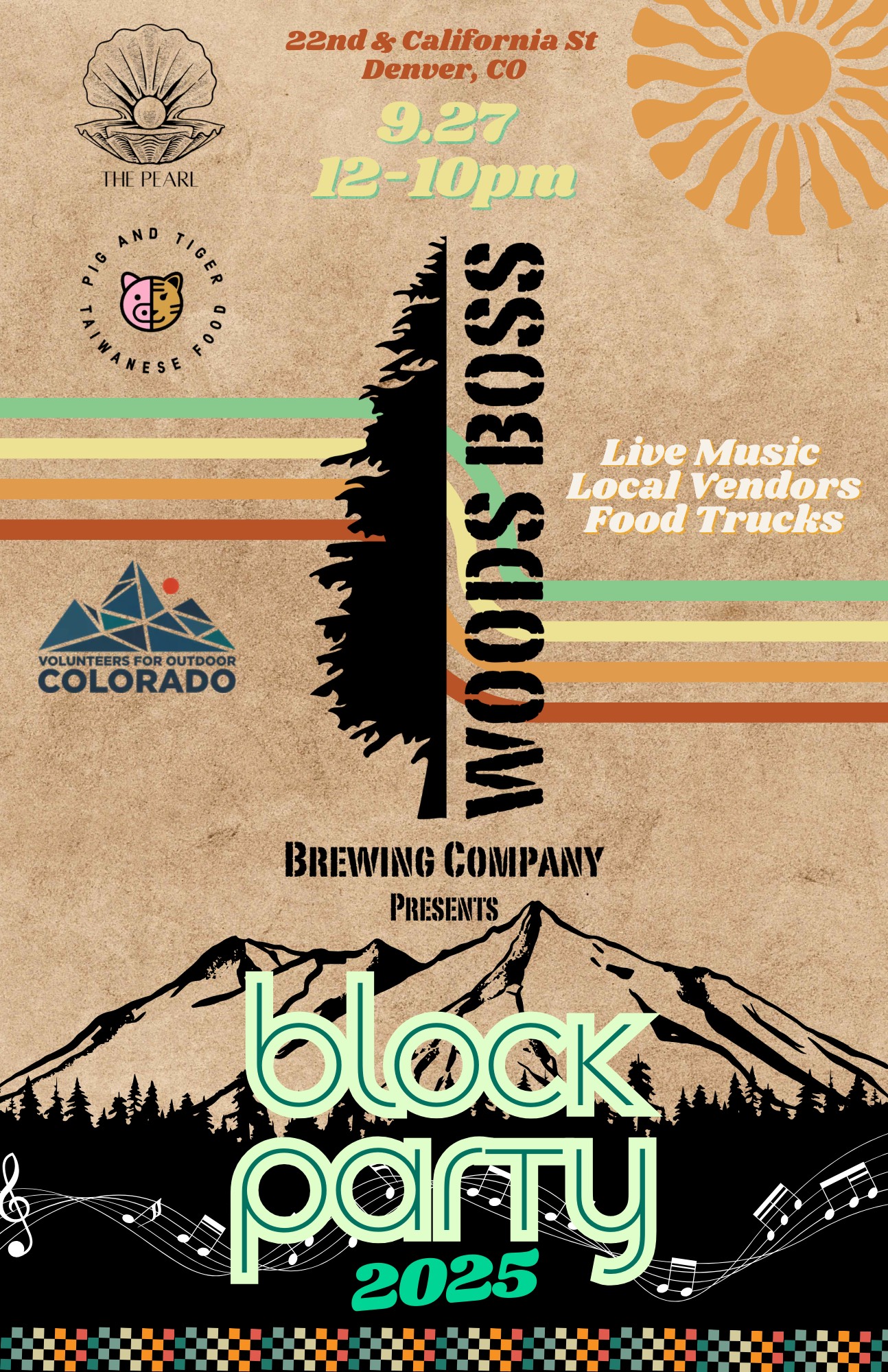 Woods Boss Brewing is excited to announce Woods Boss Block Party 2025; a block party to promote local business and celebrate the community. The Woods Boss Block Party will take place September 27, 2025 at the 2200 block of California St and 22nd St. (2210 California St, Denver, CO) in the the Five Points neighborhood.